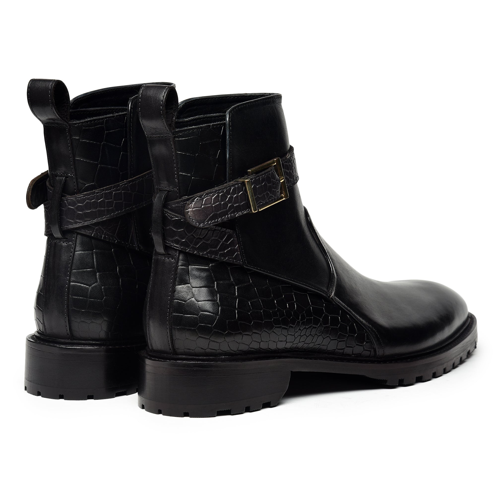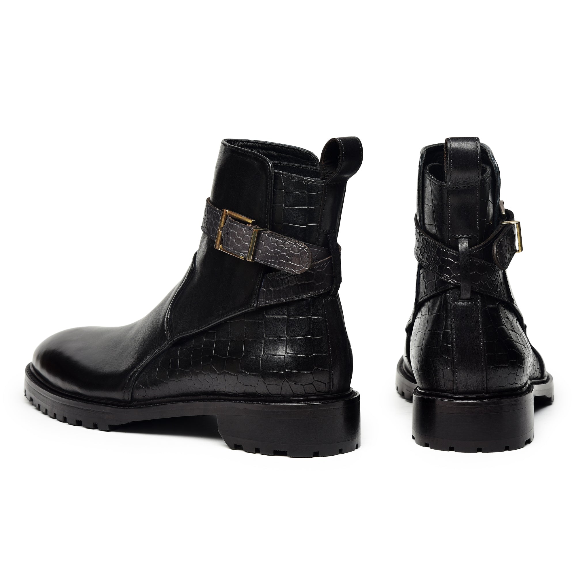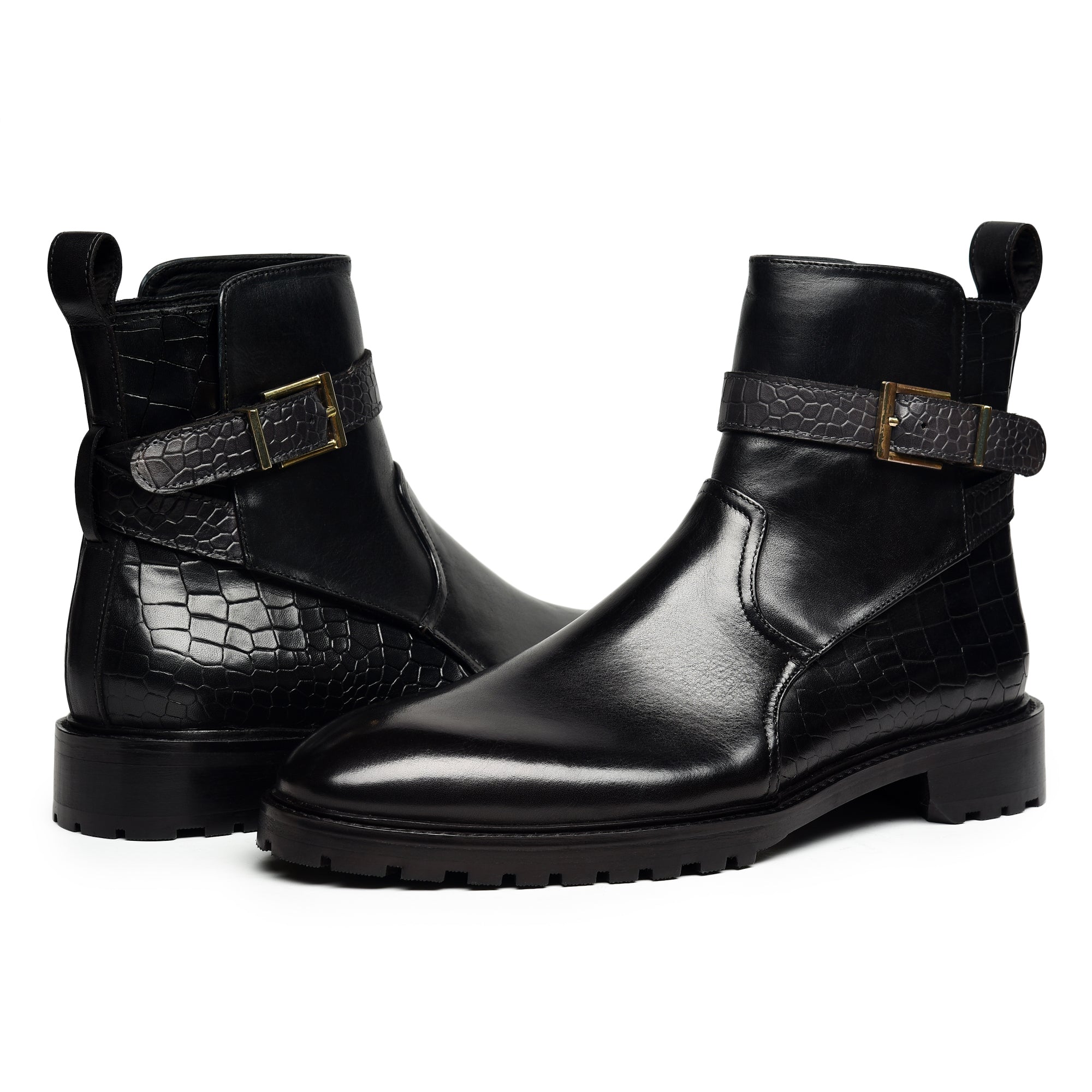 Command attention with Lethato Jodhpur Boots in Croc Black Leather — a masterpiece of craftsmanship and bold sophistication. Handcrafted from premium full-grain leather with an exquisite crocodile texture, these boots embody timeless elegance with a modern edge. The signature ankle strap and buckle add a refined touch, ensuring a secure and stylish fit. Inside, a cushioned leather insole and soft lining deliver unmatched comfort for all-day wear. Finished with a durable, hand-stitched leather sole, these Jodhpur boots showcase Lethato’s dedication to quality and detail. Perfect for discerning gentlemen, they blend classic equestrian charm with contemporary urban appeal.