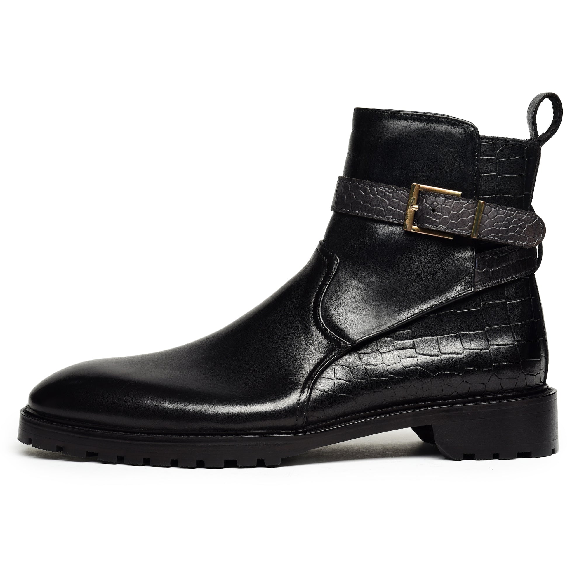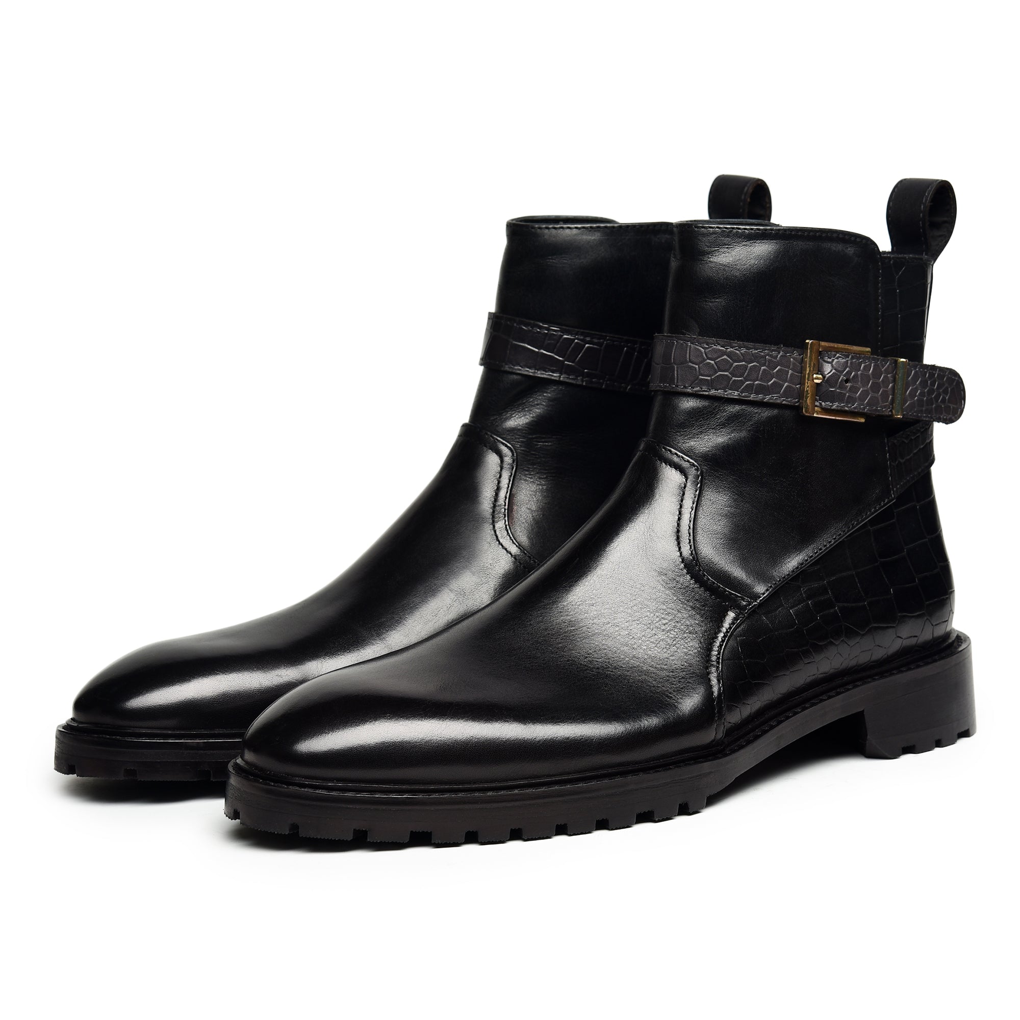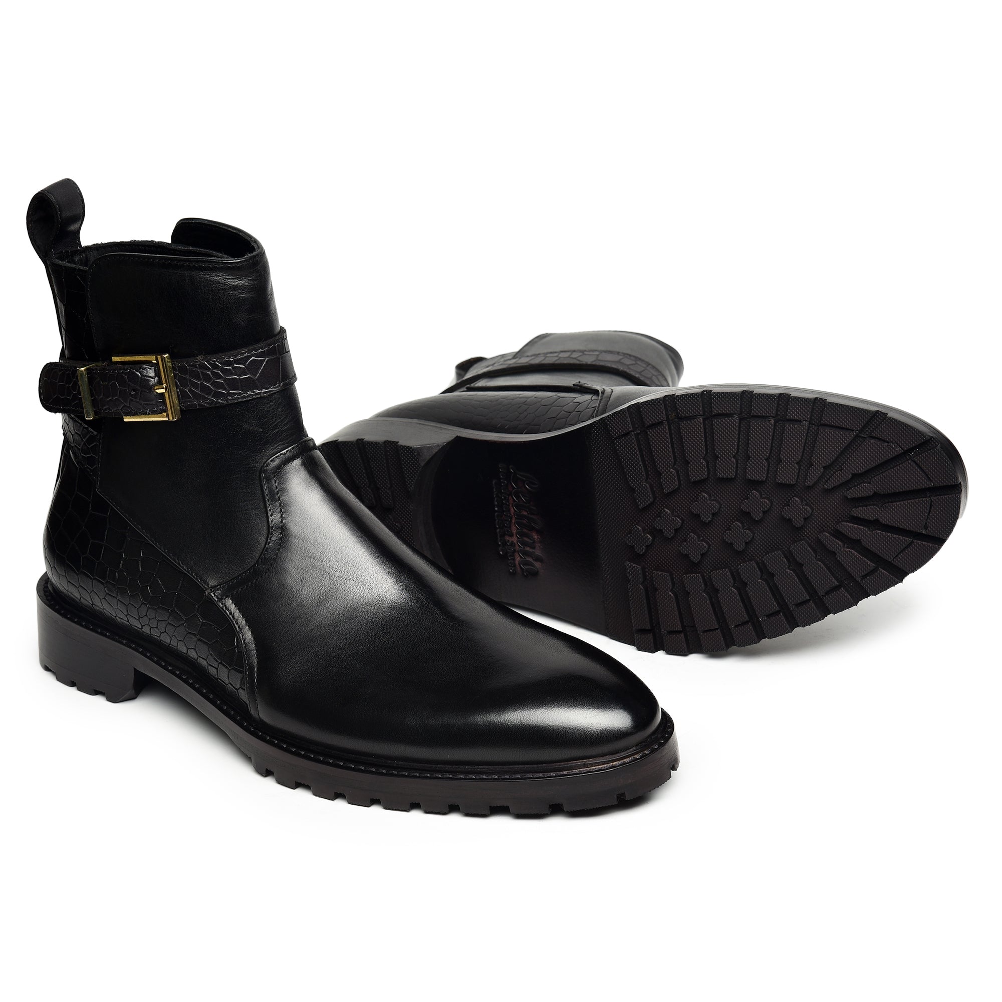 Command attention with Lethato Jodhpur Boots in Croc Black Leather — a masterpiece of craftsmanship and bold sophistication. Handcrafted from premium full-grain leather with an exquisite crocodile texture, these boots embody timeless elegance with a modern edge. The signature ankle strap and buckle add a refined touch, ensuring a secure and stylish fit. Inside, a cushioned leather insole and soft lining deliver unmatched comfort for all-day wear. Finished with a durable, hand-stitched leather sole, these Jodhpur boots showcase Lethato’s dedication to quality and detail. Perfect for discerning gentlemen, they blend classic equestrian charm with contemporary urban appeal.