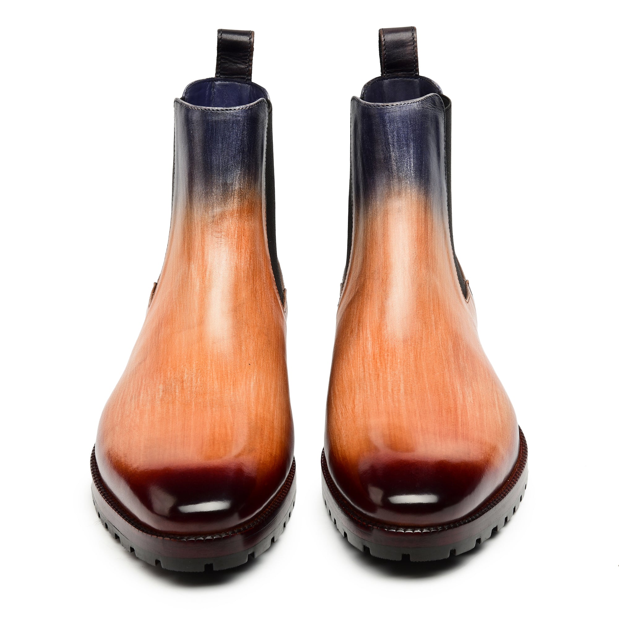 Make a bold statement with Lethato Men’s Chelsea Boots in Multicolor — a stunning showcase of artistry and craftsmanship. Hand-painted to perfection by skilled artisans, each pair features a unique blend of vibrant hues, ensuring no two boots are ever the same. Crafted from premium full-grain leather, these boots combine exceptional style with enduring quality. The elastic side panels and pull tab provide easy wear, while the cushioned leather insole offers lasting comfort. Finished with a hand-stitched leather sole, Lethato’s Multicolor Chelsea Boots embody individuality, sophistication, and contemporary flair — perfect for the modern gentleman who dares to stand out.