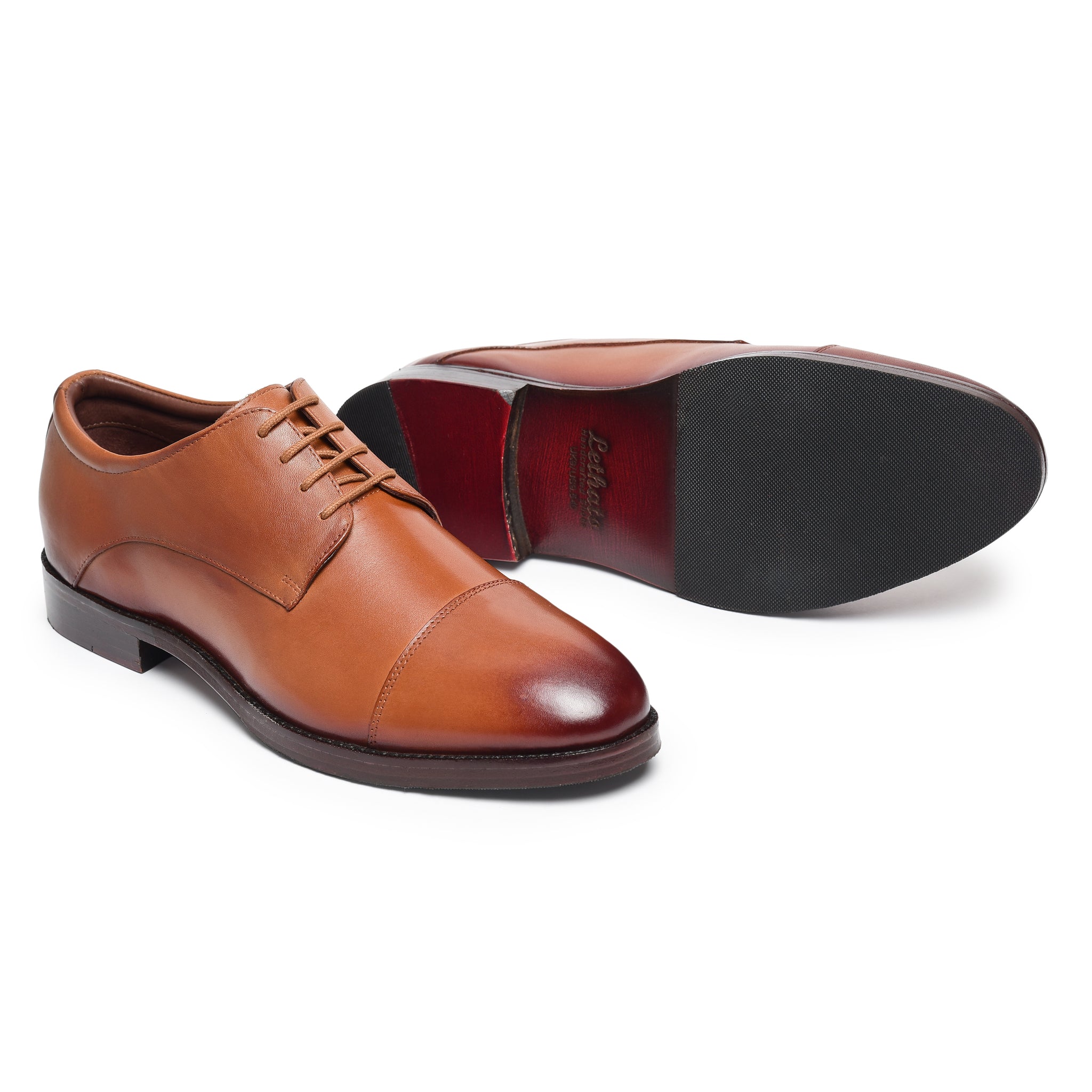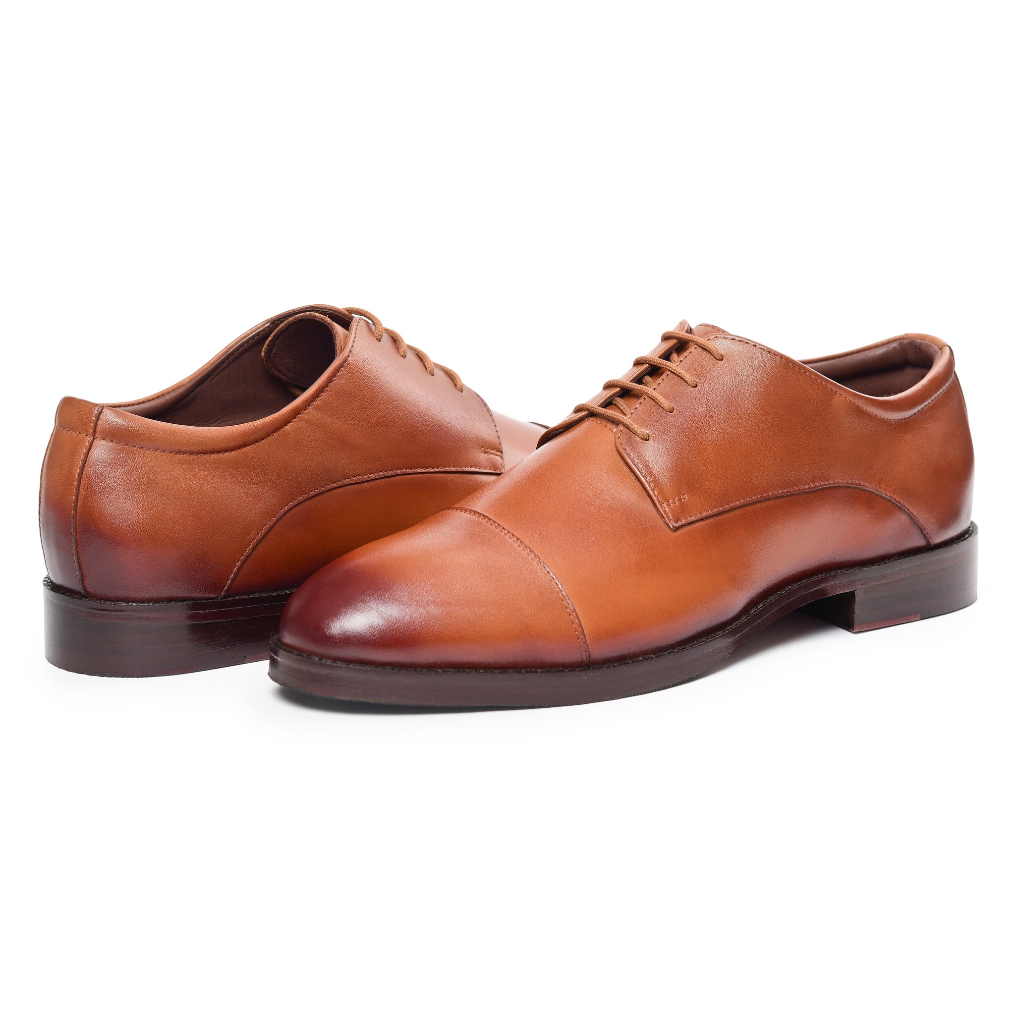 Crafted from premium tan leather with a rich, refined finish, these Derby dress shoes offer timeless elegance and everyday versatility. The open-lace design provides a comfortable, adjustable fit, while the sleek silhouette enhances both formal and smart-casual looks. A cushioned insole ensures lasting comfort during long hours, and the durable outsole delivers reliable grip and wear resistance. Perfectly balanced between classic craftsmanship and modern style, these tan Derby shoes elevate your wardrobe with confidence, sophistication, and enduring quality.